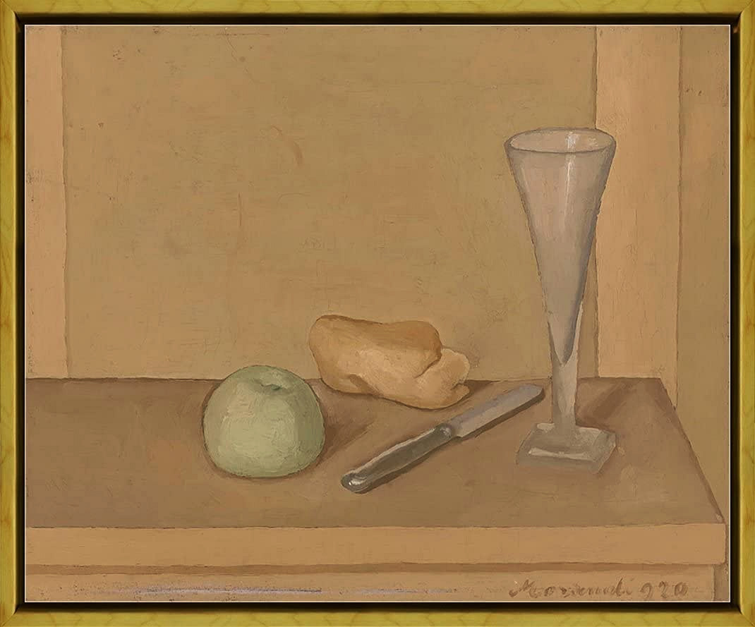 | 1922年 | 32才 | フィレンツェで開催されたフィオレンティーナ・プリマヴェリーレ(フィレンツェ春期展)にデ・キリコの紹介で出品。展覧会のカタログにはデ・キリコがモランディを讃美する紹介文を書いた。 |